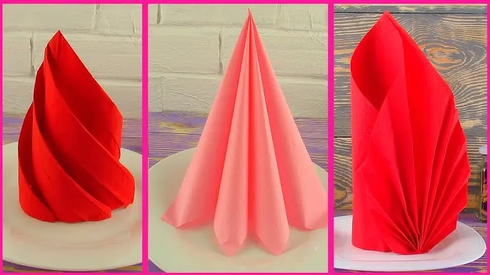 - Klasyczne papierowe serwetki sprawdzą się przy prostych złożeniach i na płasko.