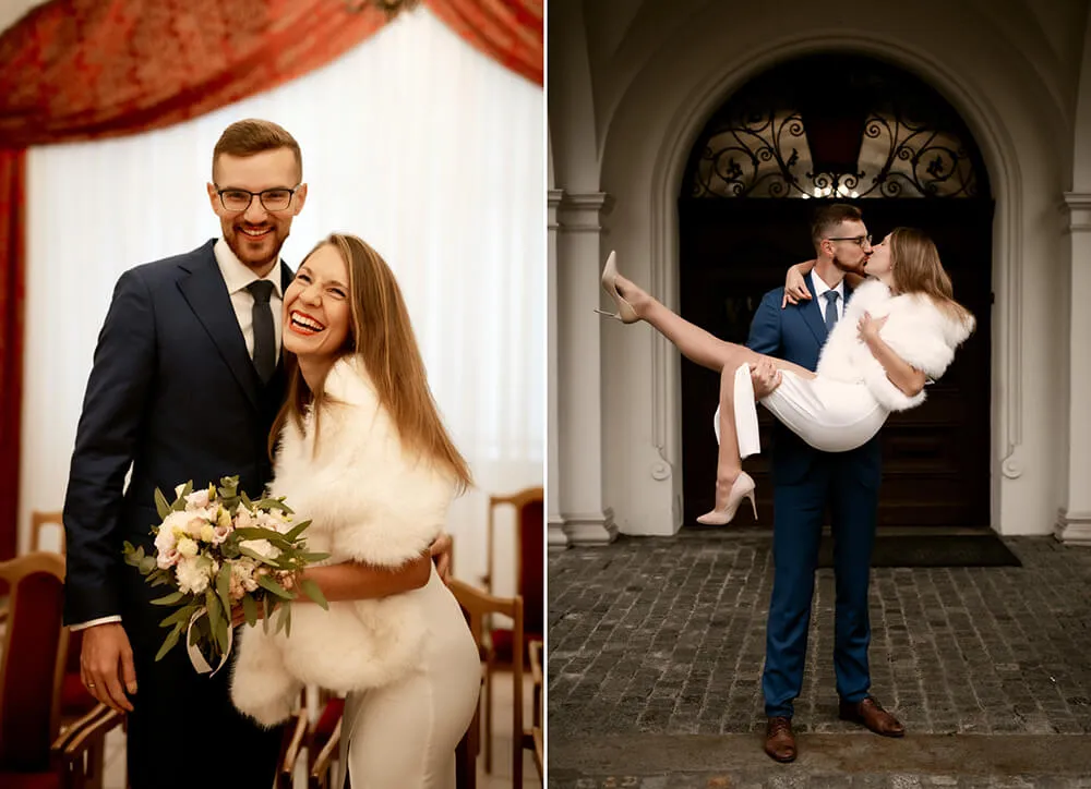Dzień ślubu w Urzędzie Stanu Cywilnego to moment pełen emocji. Ceremonia jest zazwyczaj krótka, ale bardzo uroczysta. Składa się z powitania, odczytania przez Kierownika USC artykułów Kodeksu Rodzinnego i Opiekuńczego dotyczących praw i obowiązków małżonków, a następnie z kluczowego momentu złożenia przez Was oświadczeń o wstąpieniu w związek małżeński. Po wymianie obrączek i życzeniach, następuje podpisanie dokumentów.